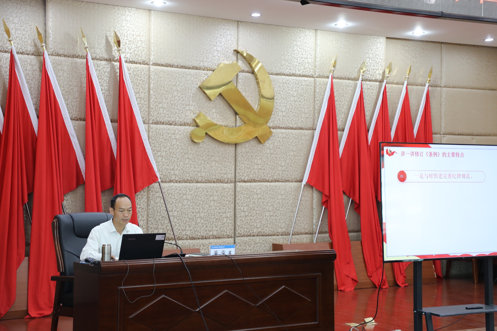 7月1日上午,公司黨委書記、副董事長董學友在公司二樓會議室為干部職工講授黨紀學習教育專題黨課,公司領導班子成員、擴大班子成員,各職能部門負責人,各基層單位黨支部負責人,黨員職工代表共計80余人參加學習。