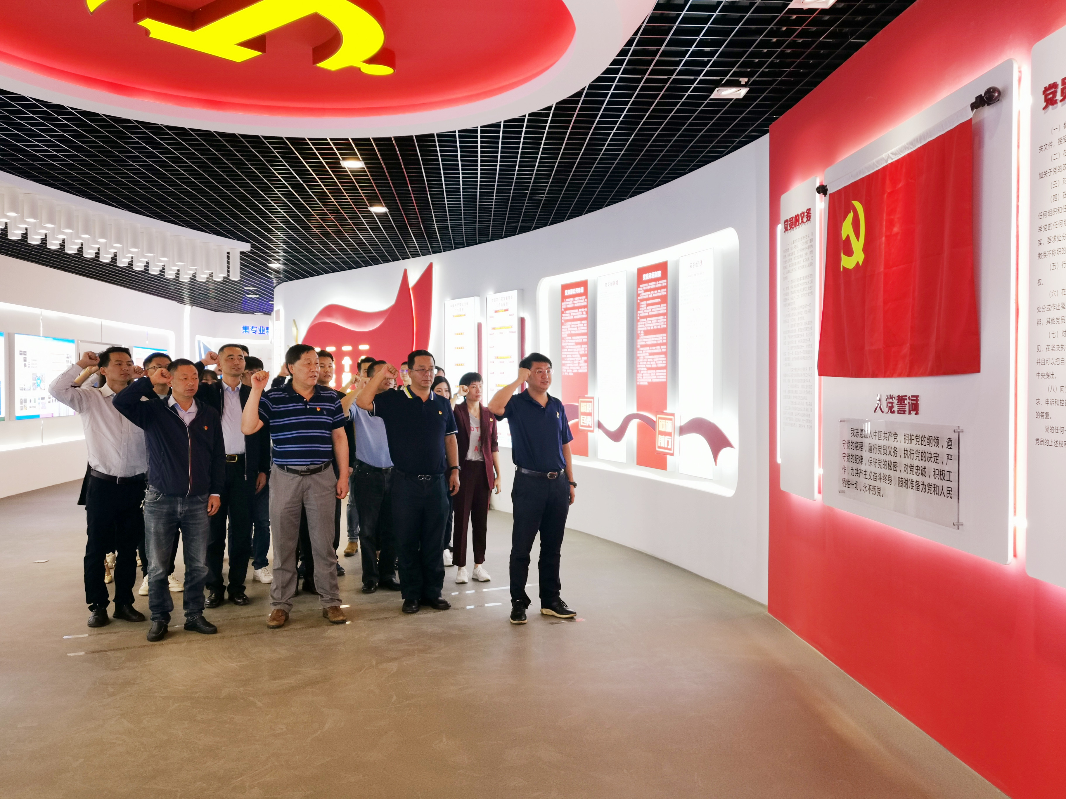王云昌一行參觀了公司黨建活動陣地,并由萬向遵帶領(lǐng)全員重溫入黨誓詞。