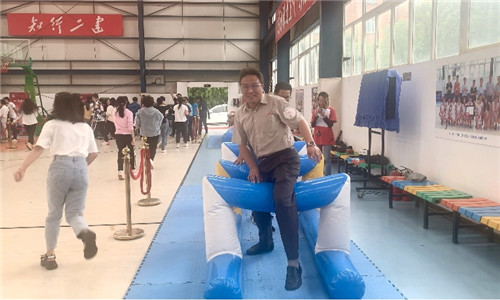 ▲游戲“飛奪瀘定橋”(集體通過獨(dú)木橋和障礙物)