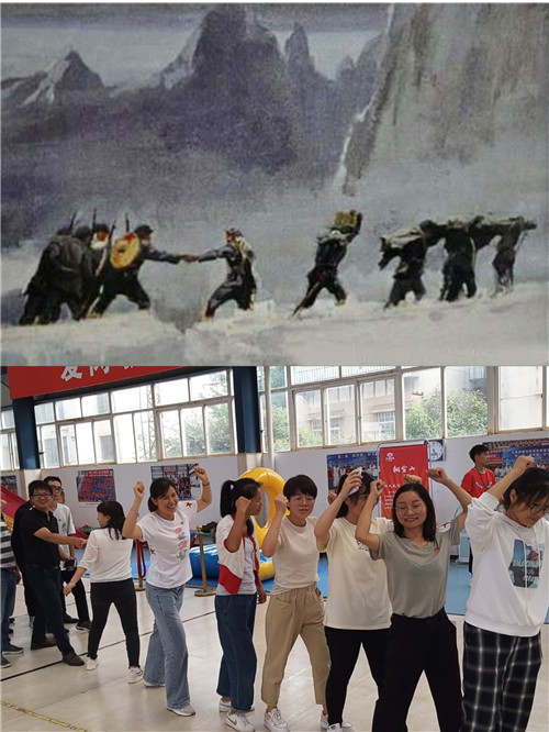黨課后,參會(huì)人員來到公司籃球館參與主題黨建活動(dòng)?;顒?dòng)根據(jù)長征路線的重要地點(diǎn)和發(fā)生的重要事件,設(shè)置了“翻雪山”、“過草地”、“飛奪瀘定橋”、“遵義會(huì)議”“四渡赤水”、“激戰(zhàn)臘子口”、“三軍會(huì)師”等七個(gè)游戲,參加活動(dòng)的人員隨機(jī)組建成“薪火相傳”、“錚錚鐵骨”、“眾志成城”、“百煉成鋼”、“勇往直前”五支隊(duì)伍參與活動(dòng)。