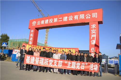 12月13日下午,公司建設(shè)產(chǎn)業(yè)化分公司黨支部聯(lián)合宜良縣住建局基建管理所黨支部,在宜良縣興安樓建設(shè)項目(蓬萊派出所)開展創(chuàng)建“紅色工地”主題黨日活動。宜良縣住建局局黨辦主任于雙舉,基建管理所黨支部書記、所長周愛民,基建管理所副所長吳紅梅,公司建設(shè)產(chǎn)業(yè)化分公司黨支部和宜良縣住建局基建管理所黨支部全體黨員參加。