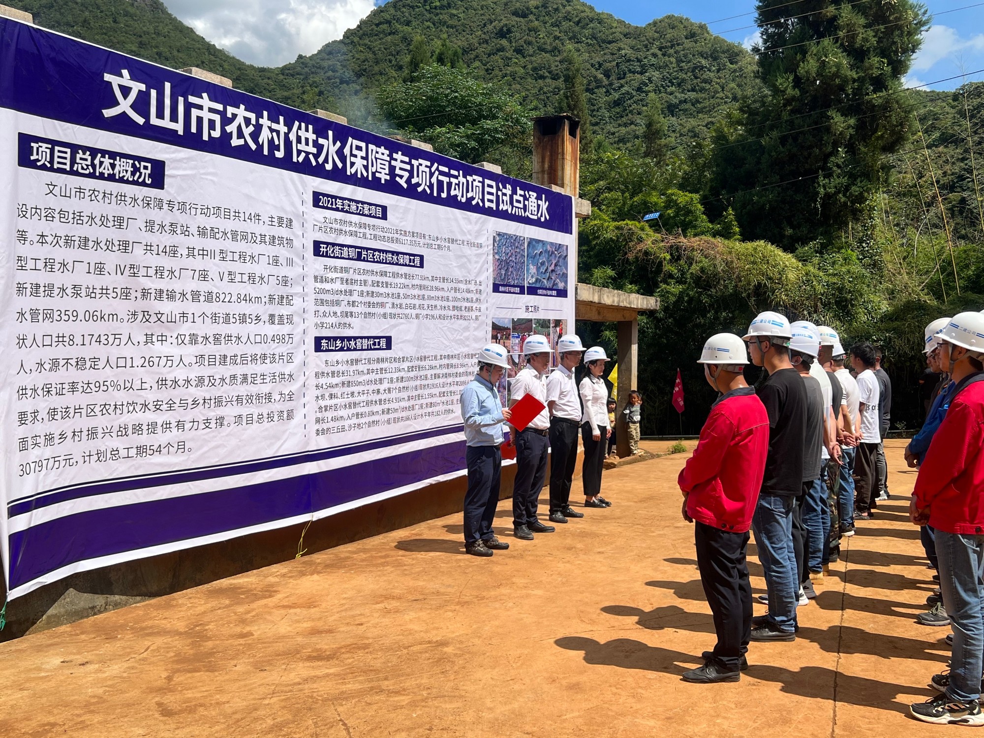 8月23日下午,第九直管部承建的文山市農(nóng)村供水保障專項(xiàng)行動(dòng)項(xiàng)目首通水儀式在東山鄉(xiāng)南林村委會秀水壩舉行,文山市人民政府副市長、市水務(wù)局、東山鄉(xiāng)政府、項(xiàng)目公司領(lǐng)導(dǎo)及各項(xiàng)目參建單位代表、當(dāng)?shù)厝罕姽餐瑓⒓恿送ㄋ畠x式。