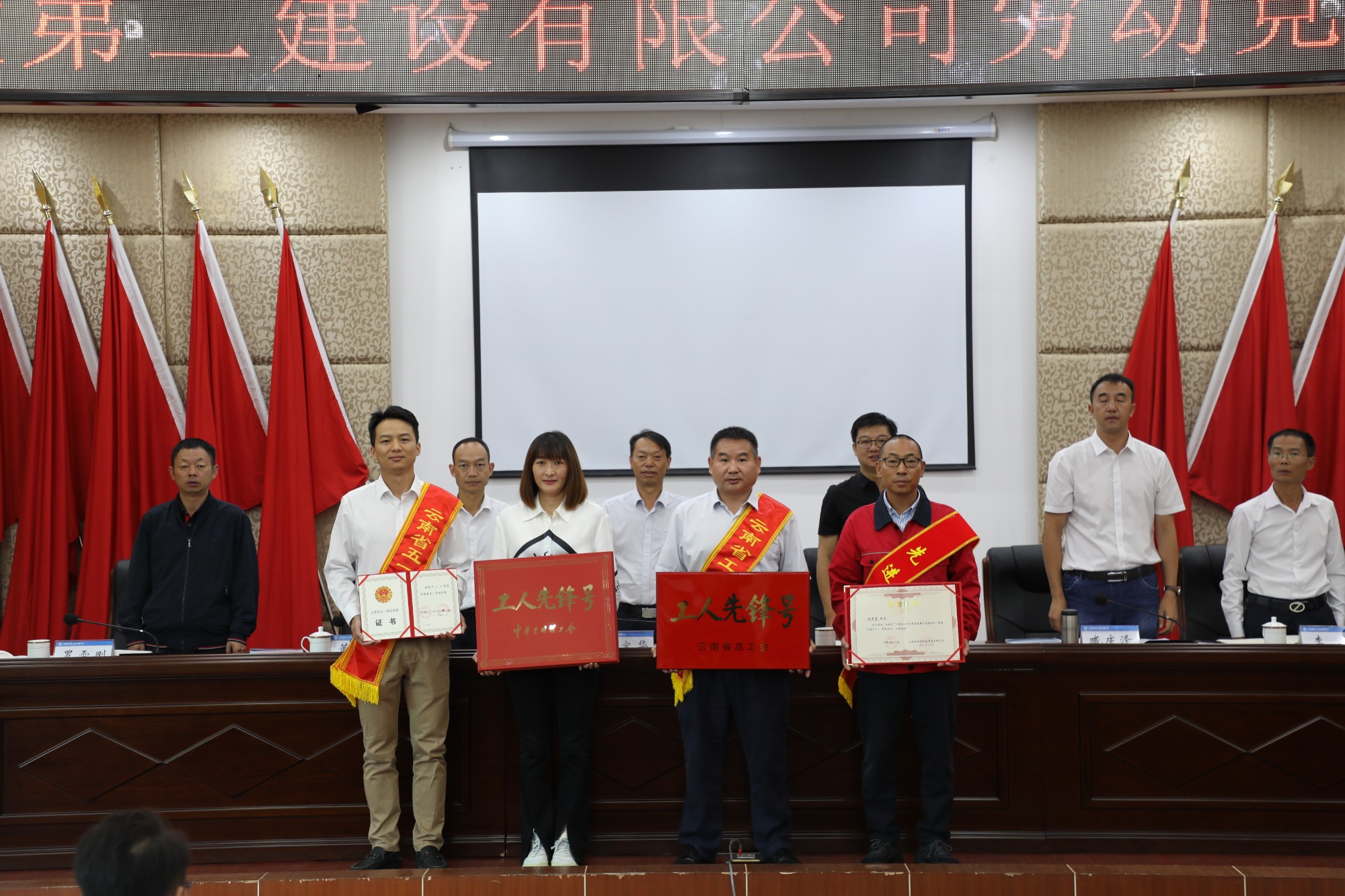 會上,臧慶澤宣讀了公司獲得全國、云南省“五一”勞動獎章和工人先鋒號的先進單位和個人的文件,公司相關領導為獲獎單位及個人進行了頒獎。