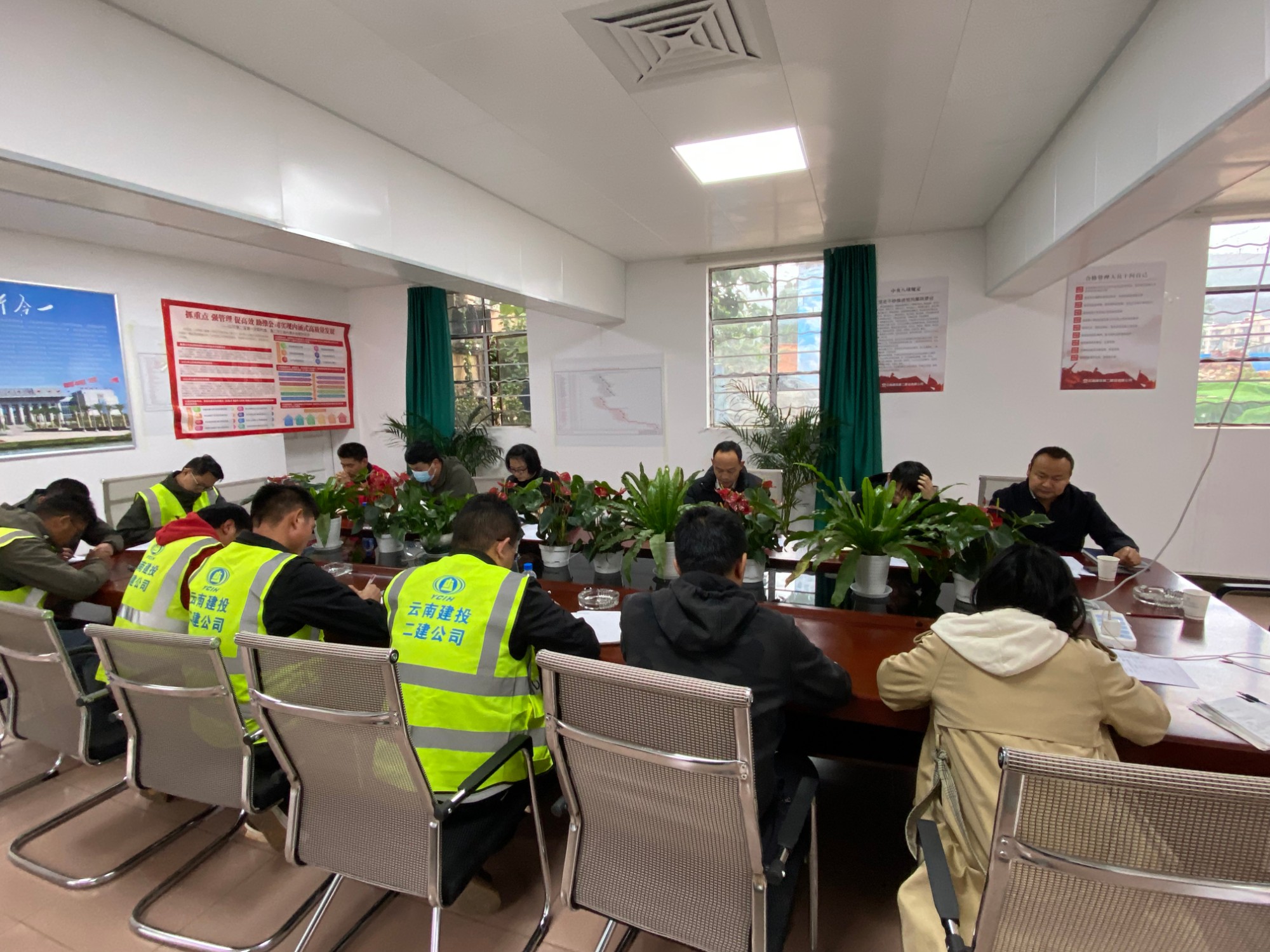 董學(xué)友指出,一是安全方面,要牢固樹立安全紅線和底線思維,要加強作業(yè)面的值守和檢查力度,加大教育交底和宣傳力度,結(jié)合公司相關(guān)制度及通知做好施工現(xiàn)場的隱患排查,特別是要做好臨邊防護、洞口覆蓋、道路環(huán)保及現(xiàn)場安全文明等工作。二是在當前生產(chǎn)環(huán)境條件下,要充分利用氣候條件和既有工作面,根據(jù)現(xiàn)場場地情況及工期合理組織施工,特別是加快路肩防護墻施工及強電入地工作。三是加強項目部管理人員成本管理意識,項目經(jīng)理要帶頭做好月收支對比表分析和盈虧分析,要帶頭理清思路,做好成本管控,及時簽訂相關(guān)合同、開具任務(wù)書、結(jié)算書,提高收支對比表的準確性,并形成相應(yīng)的臺賬記錄。四是要組織好項目部的安全檢查工作,項目上各個部門應(yīng)組織對應(yīng)崗位職責(zé)的學(xué)習(xí),對于上級發(fā)出的安全生產(chǎn)文件及相關(guān)性文件應(yīng)及時組織學(xué)習(xí),貫徹落實。