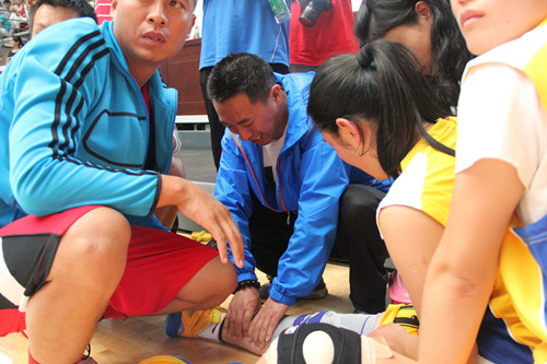 當(dāng)天,在之前的比賽中,有一名隊(duì)員因?yàn)橥话l(fā)腿部抽筋不能繼續(xù)比賽,公司醫(yī)院院長李武勝見狀便立刻跑上前去給受傷隊(duì)員做了處理。在這種時(shí)候,并不需要我們?nèi)^(qū)分屬于哪一家公司的,因?yàn)槟抢镄枰覀儯驗(yàn)槲覀兌紝儆诮üぜ瘓F(tuán)這個(gè)大家庭,在這個(gè)大家庭里需要我們互幫互助,需要我們團(tuán)結(jié)一致、敢于擔(dān)當(dāng),這是高原鐵軍的精神,是高原鐵軍的使命。